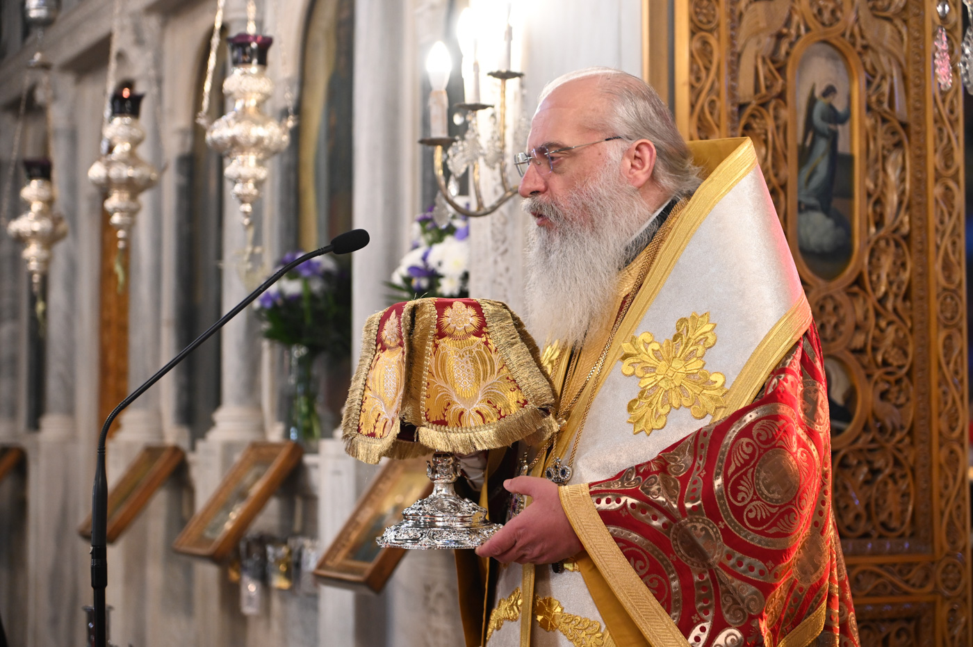 Στο κήρυγμά του ο Μητροπολίτης αναφέρθηκε στο Χερουβικό της Μεγάλης Πέμπτης “Του Δείπνου σου του Μυστικού…”, ενώ παράλληλα προέτρεψε το εκκλησίασμα να διάγει τον βίο του εν μετανοία και να μετέχει του Ιερού Μυστηρίου της Θείας Μετάληψης καθ΄ όλη την διάρκεια του έτους.