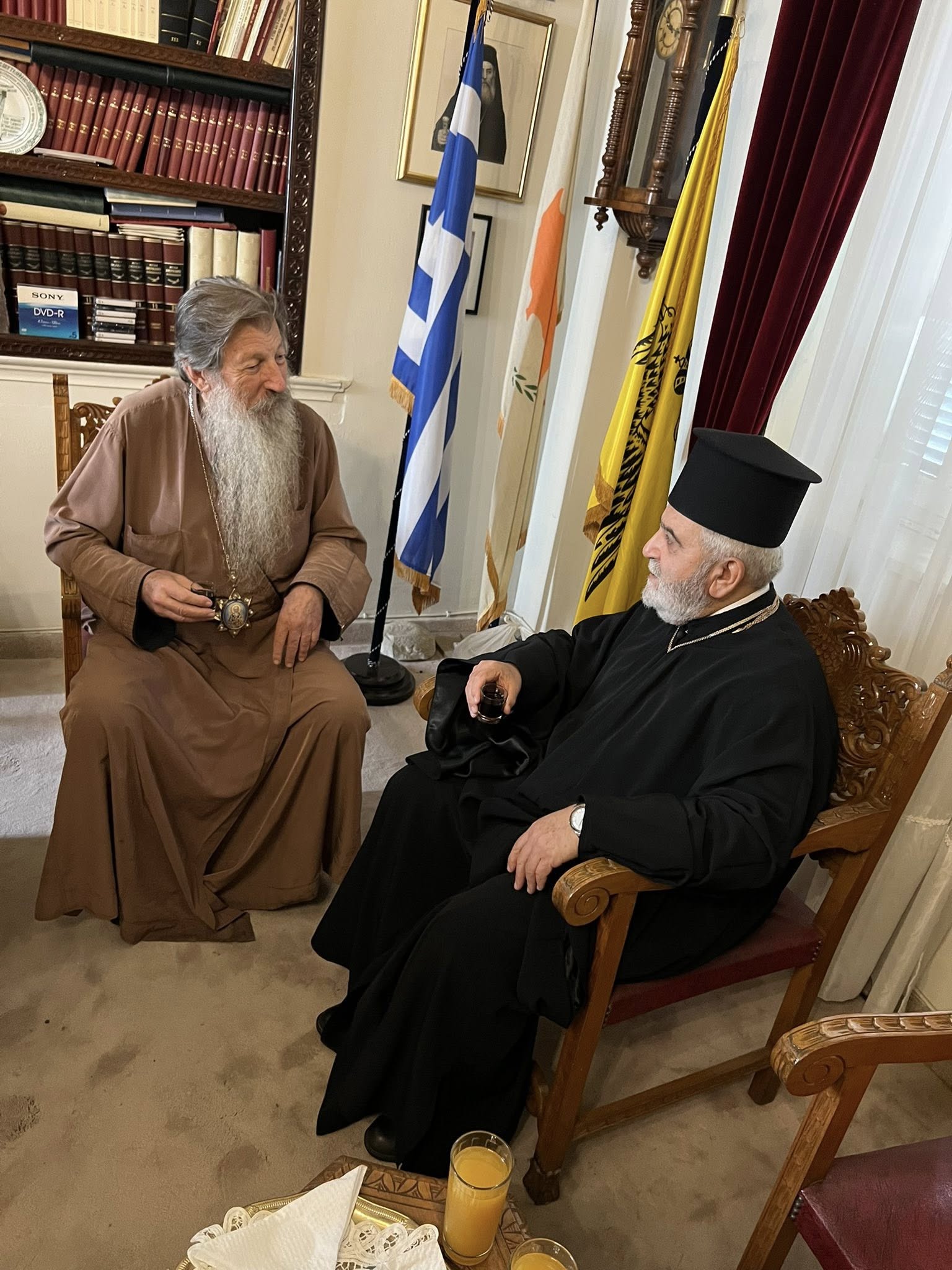 Κατά την διάρκεια της παραμονής του επισκέφθηκε, εθιμοτυπώς, τον Σεβασμιώτατο Μητροπολίτη Μηθύμνης κ. Χρυσόστομο, για την παροχή σε αυτόν της αδείας τελέσεως του ιερού μυστηρίου του Γάμου στην περιοχή του Μολύβου και τον Σεβασμιώτατο Μητροπολίτη Μυτιλήνης κ. Ιάκωβο, ο οποίος είναι απόφοιτος της Θεολογικής Σχολής της Χάλκης. Ο Σεβασμιώτατος Μητροπολίτης είχε και με τους δύο Ιεράρχες εποικοδομητική συζήτηση περί της ποιμαντικής και του εκκλησιαστικού έργου των ως άνω Ιεραρχών.