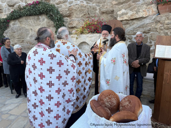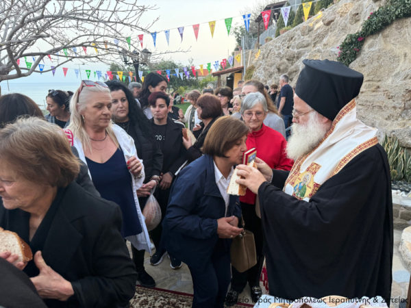 Μέσα στη λαμπρότητα της Αναστάσεως του Κυρίου μας τελέσθηκε το απόγευμα της Δευτέρας της Διακαινησίμου Εβδομάδος, 13 Απριλίου 2026, η Ακολουθία του Εσπερινού στον πανηγυρίζοντα νεόδμητο Ιερό Ναό Αγίων Ραφαήλ, Νικολάου και Ειρήνης, που βρίσκεται στη θέση «Πατέλα» της Ενορίας Νέας Ανατολής Ιεράπετρας, χοροστατούντος του Σεβασμιώτατου Μητροπολίτου Ιεραπύτνης και Σητείας κ. Κυρίλλου, ο οποίος ευλόγησε τους άρτους και κήρυξε επίκαιρα τον θείο λόγο.