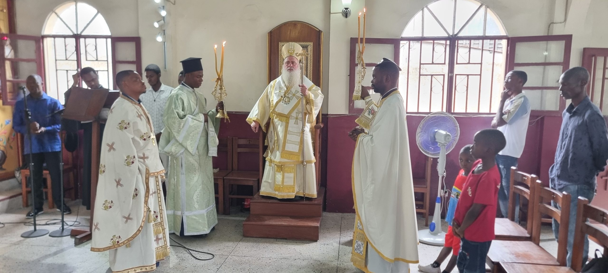 Ο Μητροπολίτης Κινσάσας κ. Θεοδόσιος τέλεσε σήμερα, Κυριακή Ε΄ Λουκά, 2 Νοεμβρίου 2025, την Θεία Λειτουργία στην Ενορία της Παναγίας Άξιον Εστίν στο Κιγκασάνι. Τον Σεβασμιώτατο πλαισίωσαν οι Πρωτοπρεσβύτεροι Κύριλλος και Ραφαήλ, ο Αρχιδιάκονος Παΐσιος και ο Διάκονος Ιερόθεος.
