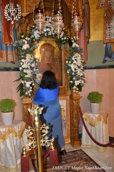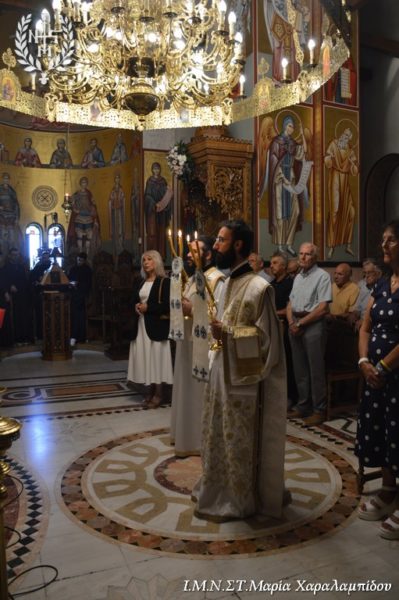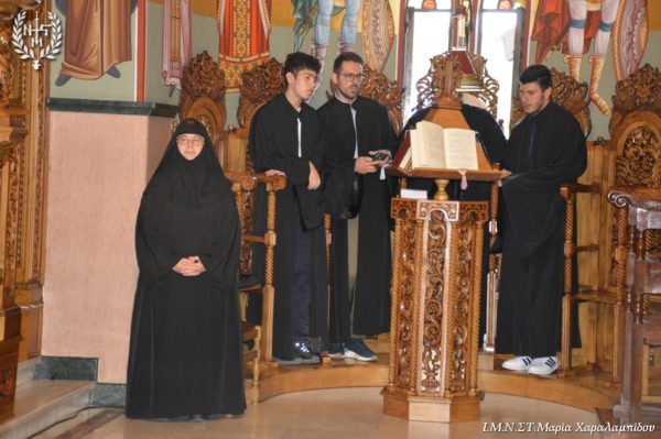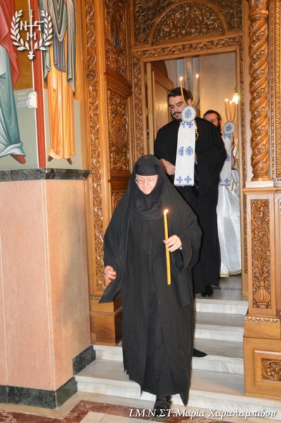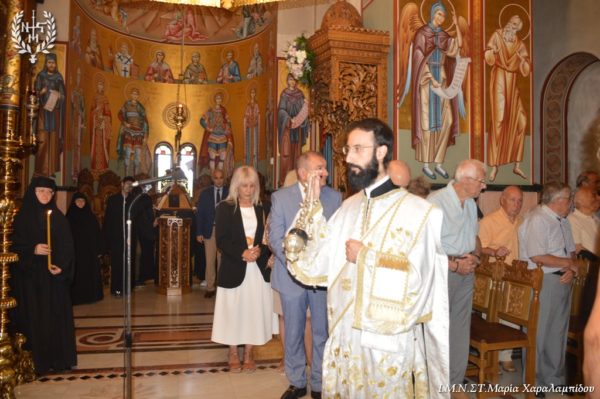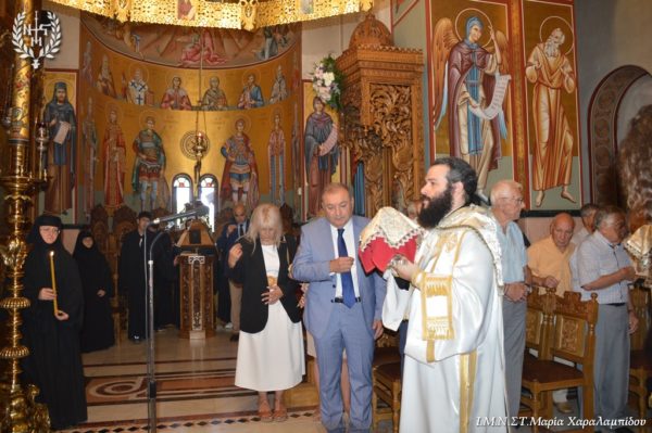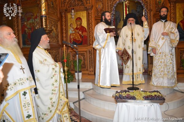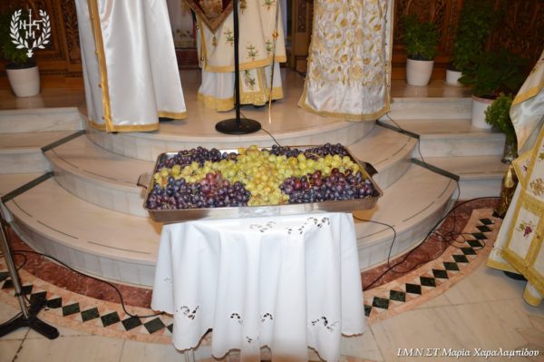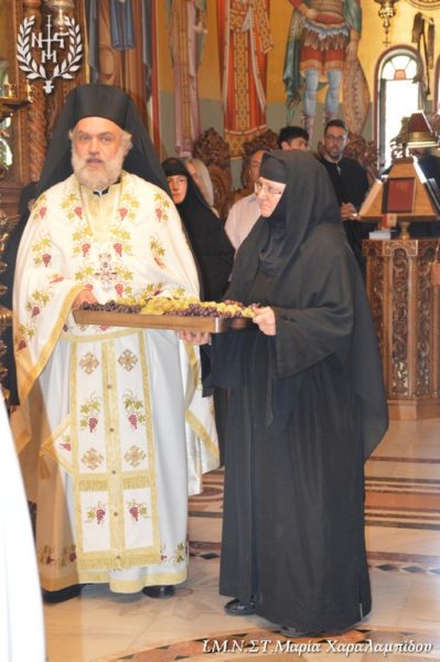 Μετά το πέρας της Θείας Λειτουργίας, ο Σεβασμιώτατος ευλόγησε, κατά το πατροπαράδοτο έθος, τα σταφύλια. Ακολούθησε το μοναστηριακό κέρασμα, το οποίο με πολλή αγάπη ετοίμασαν και πρόσφεραν οι αδελφές του Μοναστηριού, στους εκατοντάδες πιστούς που υπερεπλήρωσαν όλους τους χώρους της Ιεράς Κοινοβιακής Μονής.