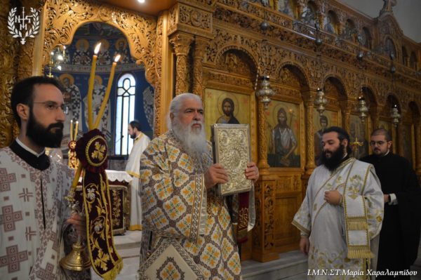 Μετά το πέρας της Θείας Λειτουργίας, ο Σεβασμιώτατος, ευχαρίστησε το χορό των ιεροψαλτών, τις κυρίες της διακονίας και ιδιαιτέρως τους πατέρες του Ιερού Ναού για την ποιμαντική τους μέριμνα.