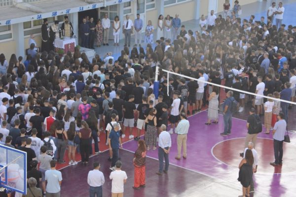Μόλις πρό ὀλίγου ἔγινε ὁ καθιερωμένος Ἁγιασμός. Ὁ Ἁγιασμός εἶναι μιά πράξη ἱερή, μέ τήν ὁποία παρακαλέσαμε τόν Κύριό μας Ἰησοῦ Χριστό νά εὐλογήσει τήν ἔναρξη τοῦ νέου σχολικοῦ ἔτους. Νά φωτίσει καί νά ἐνισχύσει τούς σεβαστούς καθηγητές (δασκάλους) σας. Καί σέ σᾶς νά χαρίσει ὑγεία, δύναμη καί ζῆλο γιά μάθηση.