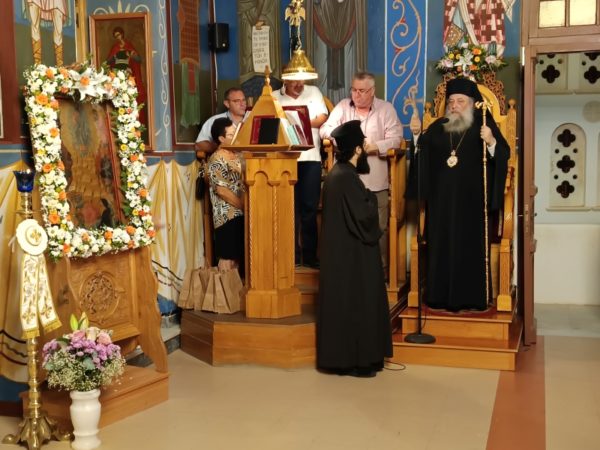 Ο Σεβασμιώτατος ευλόγησε τους προσφερθέντες άρτους και κήρυξε τον θείο λόγο, πλαισιούμενος από τον Γενικό Αρχιερατικό Επόπτη Νήσων Πάρου και Αντιπάρου Πρωτοπρεσβύτερο π. Δημήτριο Κυδωνιέα, τον Πρωτοπρεσβύτερο π. Ιωάννη Νικηφοράκη, τον Οικονόμο π. Νικόλαο Σκαλίμη και τον Διάκονο π. Παναγιώτη Κοσμόπουλο.