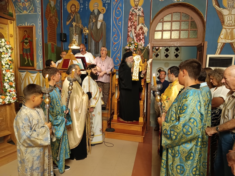 Ο Σεβασμιώτατος ευλόγησε τους προσφερθέντες άρτους και κήρυξε τον θείο λόγο, πλαισιούμενος από τον Γενικό Αρχιερατικό Επόπτη Νήσων Πάρου και Αντιπάρου Πρωτοπρεσβύτερο π. Δημήτριο Κυδωνιέα, τον Πρωτοπρεσβύτερο π. Ιωάννη Νικηφοράκη, τον Οικονόμο π. Νικόλαο Σκαλίμη και τον Διάκονο π. Παναγιώτη Κοσμόπουλο.