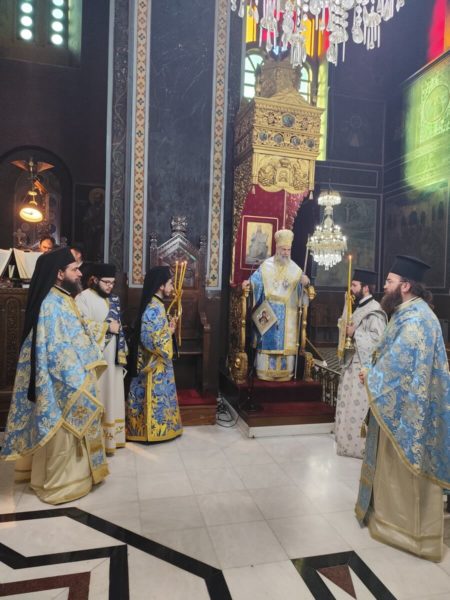 Έναντι, λοιπόν, αυτής της μεγάλης προσφοράς και ευεργεσίας των προγόνων μας, μεταφέρθηκε και αυτή η σημερινή εορτή της Παναγίας, της Κυρίας Θεοτόκου, της Σκέπης του κόσμου, για να εορτάζουμε με ύμνους και δοξολογίες προς τον Θεό, αλλά και ευχαριστίες προς την Παναγία Μητέρα για όλα αυτά τα οποία Εκείνη προσέφερε και ενδυνάμωσε μικρούς και μεγάλους, γέροντες, άνδρες και γυναίκες, οι οποίοι όλοι μαζί αγωνίστηκαν αυτόν τον άνισο και μεγάλο αγώνα για να είμαστε εμείς σήμερα ελεύθεροι.
