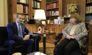 Ο Κυριάκος Μητσοτάκης αφού ευχήθηκε καλή Σαρακοστή στην Πρόεδρο της Δημοκρατίας Κατερίνας Σακελλαροπούλου, της έθεσε ως πρώτη προτεραιότητα της Κυβέρνησης το θέμα της ακρίβειας.