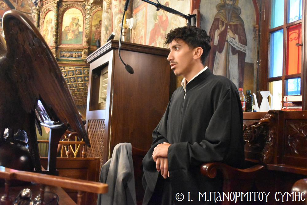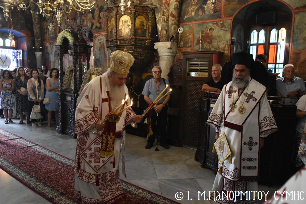 Εχθές, Παρασκευή 5η Σεπτεμβρίου, εσπέρας της παραμονής, ετελέσθη ο Μέγας πανηγυρικός Εσπερινός εις το Καθολικόν της Ιεράς Μονής του Ταξιάρχου μας Μιχαήλ του Πανορμίτου, χοροστατούντος του Σεβ. Μητροπολίτου Νέας Κρήνης και Καλαμαριάς κ. Ιουστίνου, όστις αφίχθη ασμένως, συνοδευόμενος από τον Πανοσιολ. Αρχιμανδρίτην π. Χρυσόστομον Αγιορείτην και τον Ιεροδιάκονόν του π. Αυγουστίνο. Ο Σεβ. Ποιμενάρχης κ. Χρυσόστομος παρέστη συγχοροστατών από του Παραθρονίου, αμφοτέρων συμπαραστατουμένων εκ του Πανοσιολ. Καθηγουμένου της πανηγυριζούσης Ι. Μονής, Αρχιμανδρίτου του Οικουμ. Θρόνου π. Αντωνίου, του προαναφερομένου π. Χρυσοστόμου Αγιορείτου και των κληρικών μας Πρεσβ. π. Γεωργίου Χατζηχρυσάφη και π. Γεωργίου Κακακιού, ως και των Ιεροδιακόνων π. Αυγουστίνου και π. Παύλου, αδελφού της Μονής του Πανορμίτου. Τα δε ι. αναλόγια διακόνησαν γλυκυφθόγγως κατά την Πανήγυριν, οι Ιεροψάλτες κ.κ. Δημοσθένης και Μερκούριος Γιανναράς, Ελευθέριος Ξηράκης, Θεόδωρος Κορδομπούσης, Πανορμίτης Κακακιός και Ευάγγελος Λαγός.