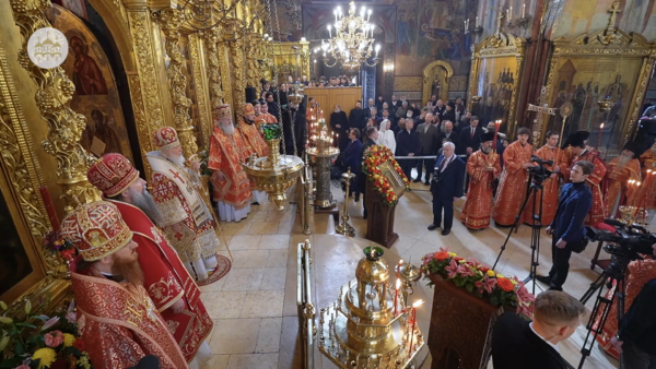 Στον Καθεδρικό Ναό της Κοιμήσεως της Θεοτόκου, ο Προκαθήμενος της Ρωσικής Ορθόδοξης Εκκλησίας προεξήρχε της Θείας Λειτουργίας.