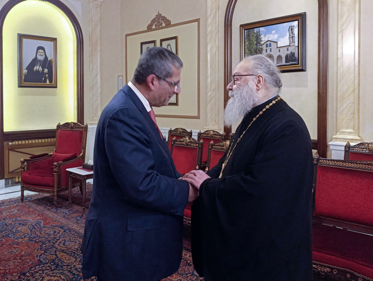 Ο Πατριάρχης Αντιοχείας και πάσης Ανατολής κ.κ. Ιωάννης Ι’, υποδέχθηκε τον Πρέσβη του Λιβάνου στη Συρία, Ερρίκο Κάστον, στην Πατριαρχική Οικία στη Δαμασκό.
