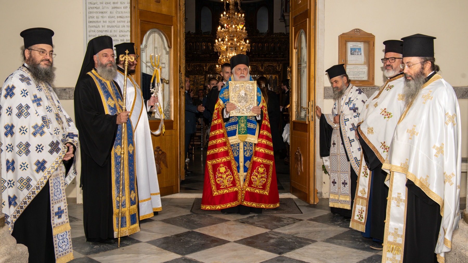 ἔχοντας τὴν τιμὴ καὶ τὴν χαρὰ τοῦ ἀπὸ πολλῶν ἐτῶν συνδέσμου μαζί σας, Σᾶς ὑποδέχομαι σήμερα μὲ αἰσθήματα βαθύτατης συγκινήσεως, ὡς ἡ κεφαλὴ τῆς τοπικῆς Ἐκκλησίας.