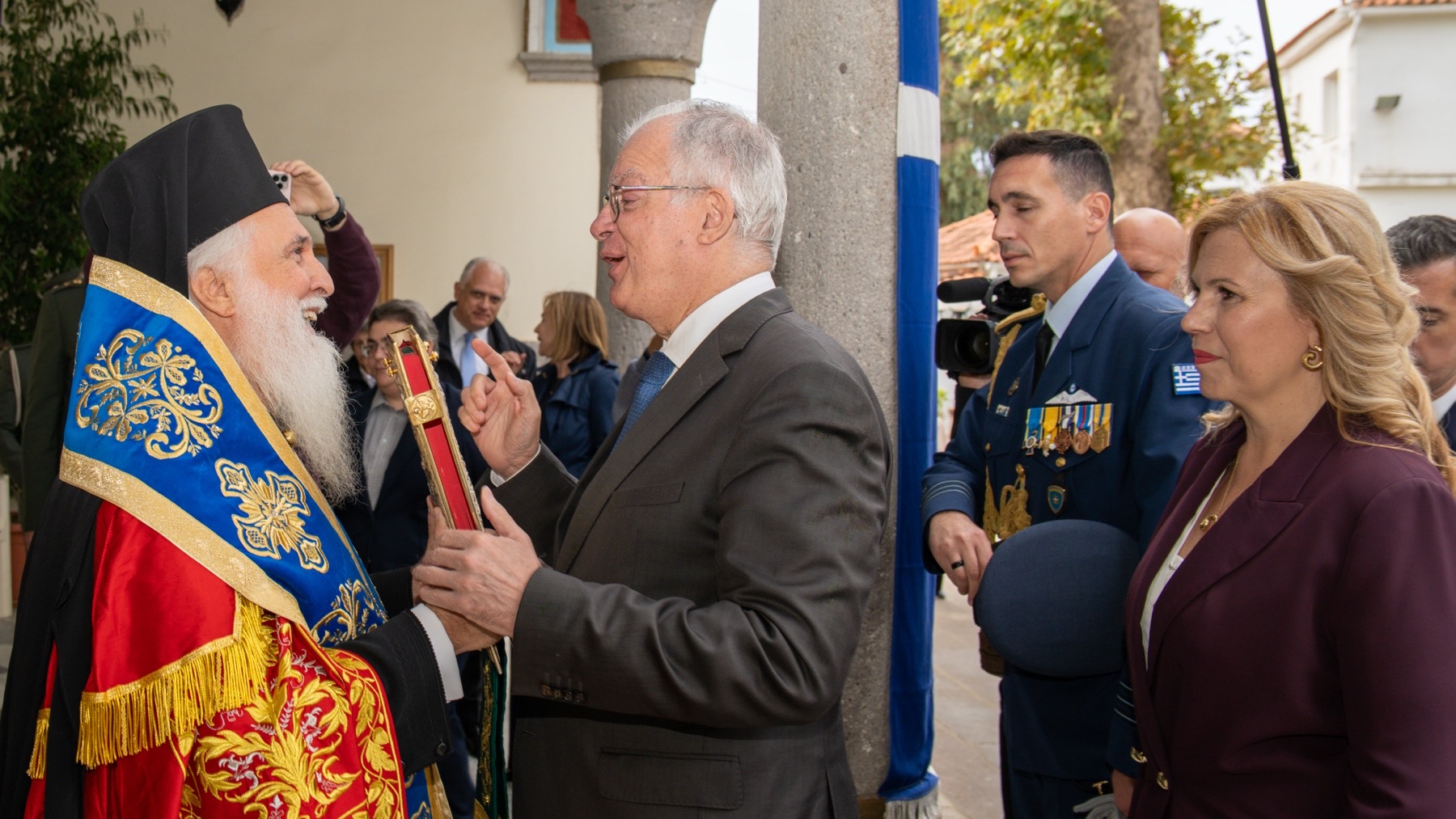 Τους φετινούς εορτασμούς των Ελευθερίων της νήσου λάμπρυνε ιδιαιτέρως με την υψηλή παρουσία του ο Εξοχώτατος Προέδρος της Ελληνικής Δημοκρατίας, κ. Κωνσταντίνος Τασούλας, προς τον οποίο ο Σεβασμιώτατος απηύθυνε τον ακόλουθο χαιρετισμό.