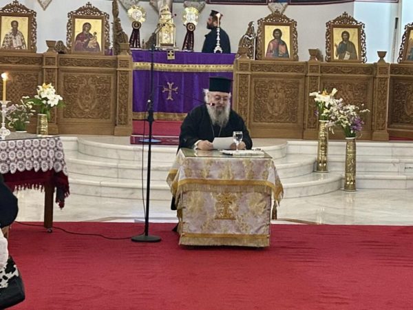 Ο Σεβασμιώτατος στην προσλαλιά του, ευχαρίστησε εγκαρδίως τον Πανοσιολ. Αρχιμανδρίτη Γέρων Αντίπα για την ευλογία της παρουσίας του και τον ωφέλιμο πνευματικό του λόγο, που ενίσχυσε το πλήρωμα της τοπικής Εκκλησίας.