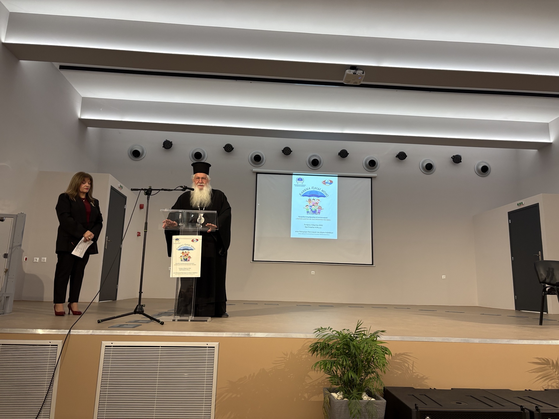 Το απόγευμα της Τετάρτης 4 Μαρτίου 2026 ο Σεβασμιώτατος Μητροπολίτης Θηβών κ. Γεώργιος παρευρέθηκε στην εναρκτήρια Ημερίδα με θέμα: “Συγκρότηση τοπικού δικτύου πρόληψης της βίας: Ενώνοντας τις δυνάμεις μας”, η οποία πραγματοποιήθηκε στον Πολυχώρο Πολιτισμού του Δήμου Λεβαδέων.