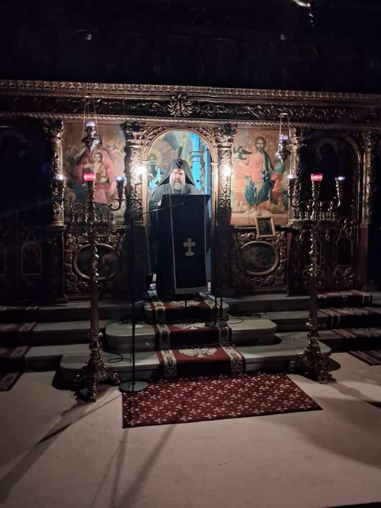 Τον θείο λόγο κήρυξε ο Ιεροκήρυκας της Ιεράς μας Μητροπόλεως, Πανοσιολογιώτατος Αρχιμανδρίτης π. Ιωαννίκιος Ζαμπέλης ο οποίος και ανέπτυξε το θέμα «Ὁδός ἐλευθερίας».