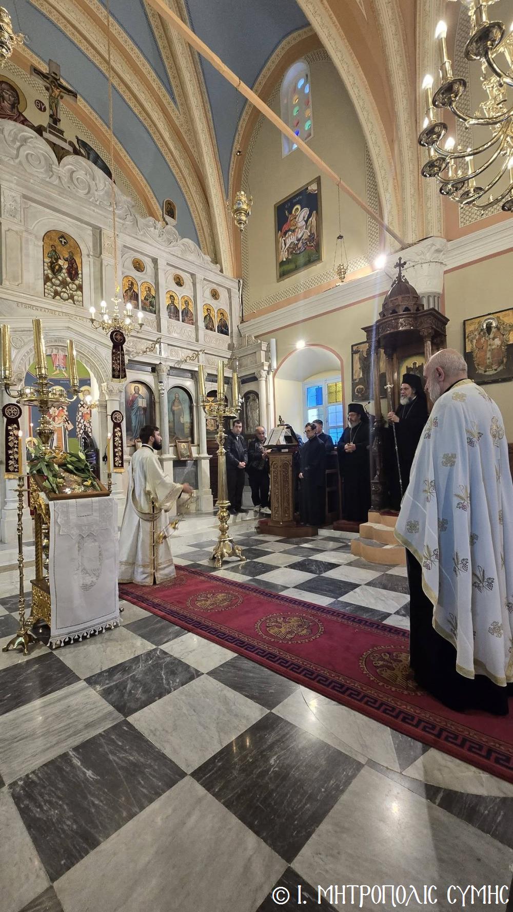 Με ιδιαίτερη κατάνυξη το εσπέρας της 1ης Μαρτίου 2026, Κυριακή Α’ των Νηστειών, ο Σεβ. Μητροπολίτης Σύμης κ. Χρυσόστομος, χοροστάτησε στον Β΄ Κατανυκτικό Εσπερινό.