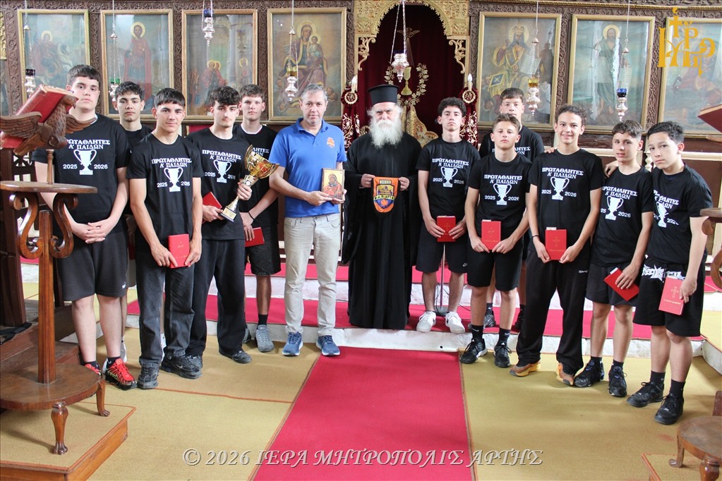 Η ομάδα Παίδων του Βυζαντινού Α.Ο. Άρτας, μετά την κατάκτηση του Πρωταθλήματος Α΄ Παίδων ΕΣΚΑΒΔΕ, επισκέφθηκε την Πέμπτη 30 Απριλίου 2026 τον Σεβασμιώτατο Μητροπολίτη Άρτης κ. Καλλίνικο στο Επισκοπείο.