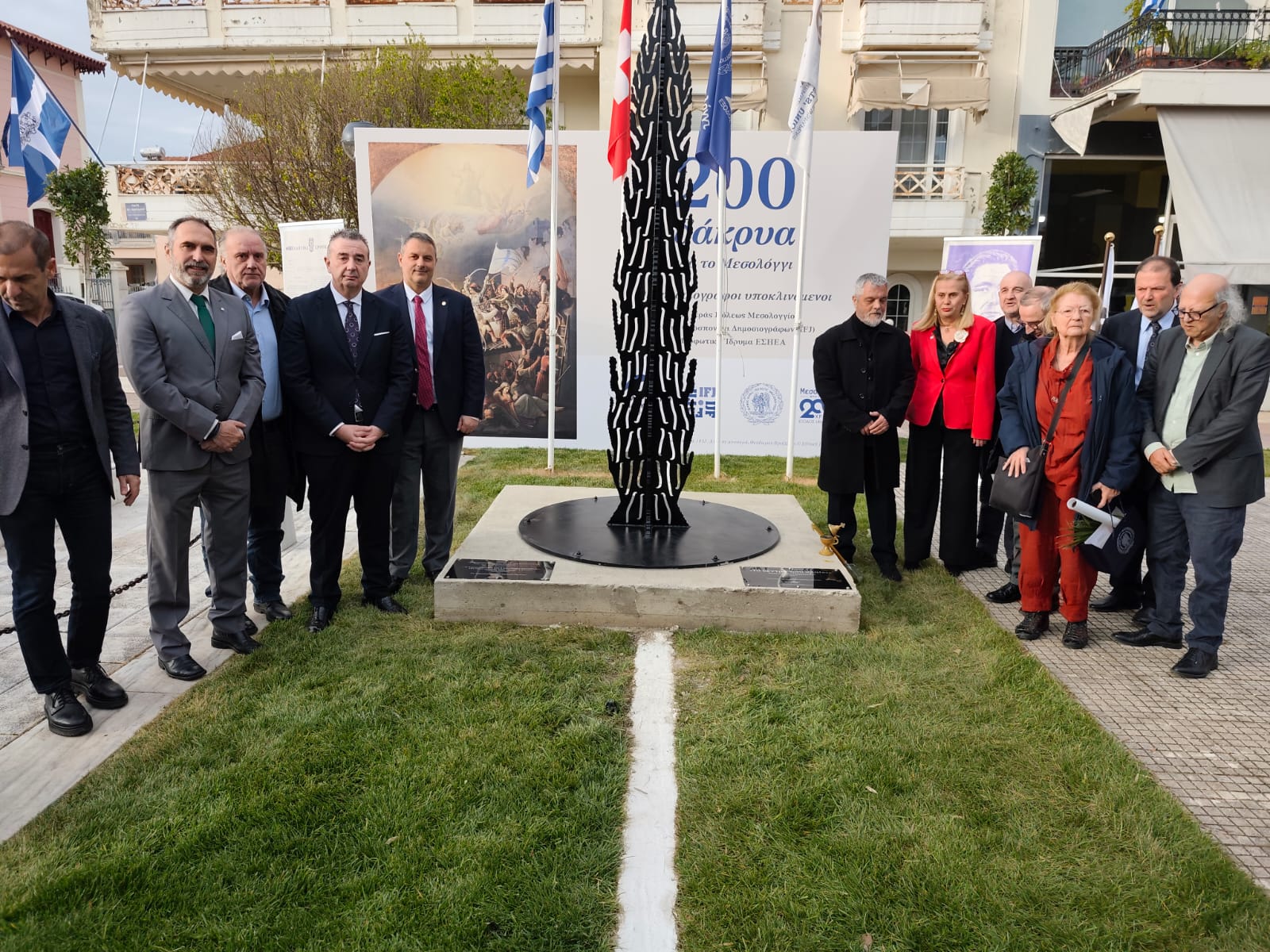 Νωρίτερα πραγματοποιήθηκαν τα αποκαλυπτήρια του γλυπτού έργου”Το δέντρο που κλαίει “από την Πρόεδρο της Διεθνούς Ομοσπονδίας Δημοσιογράφων Dominique Pradalie στο πλαίσιο των επετειακών εκδηλώσεων για τα 200 Χρόνια από την Έξοδο του Μεσολογγίου.