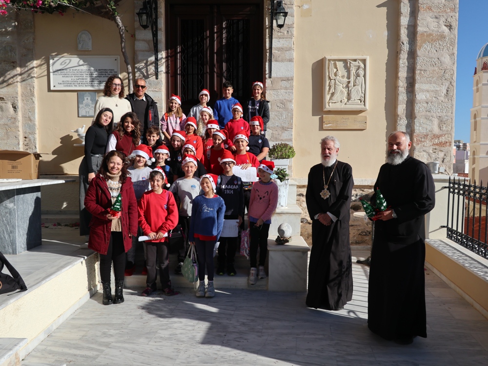 Τα Χριστουγεννιάτικα κάλαντα έψαλαν και εγκάρδιες ευχές απηύθυναν στον Σεβασμιώτατο Μητροπολίτη Σύρου κ. Δωρόθεο Β’ Εκπαιδευτικοί και Μαθητές των Σχολείων «Δελασάλ» Σύρου, σήμερα το πρωί στο Επισκοπείο Ερμουπόλεως.