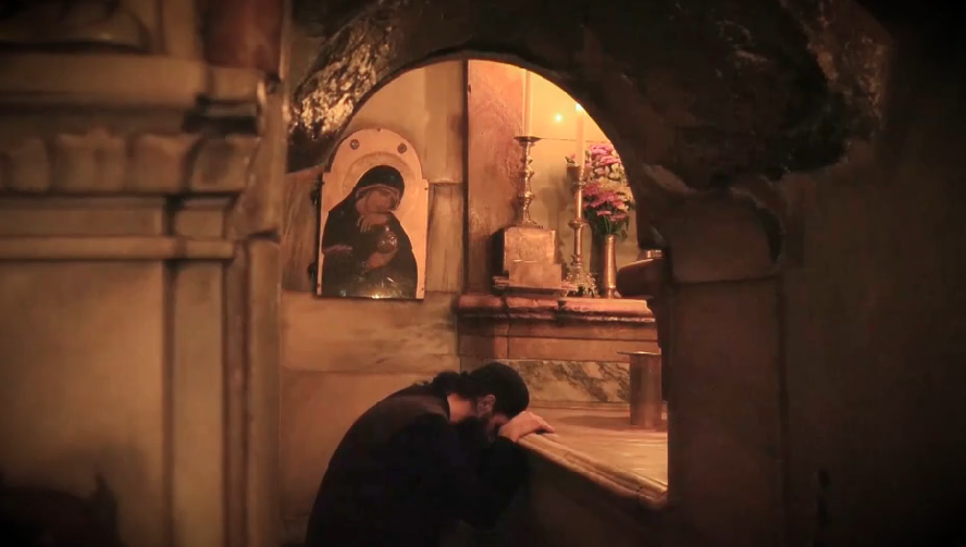 Μπαίνοντας στο Ιερό κουβούκλιο στον προθάλαμο όπου είναι το παρεκκλήσι του Αγγέλου, εκεί δηλαδή που στάθηκε ο Άγγελος σύμφωνα με τις γραφές τις κρίσιμες στιγμές μετά την ταφή του Χριστού, φαίνονται δυο αγιογραφίες αρχαγγέλων, μια αγιογραφία της Θεοτόκου και αγιογραφίες των μυροφόρων: H Μαρία του Κλωπά, η Μαρία η Μαγδαληνή, η Μάρθα, η Σαλώμη, η Σωσάνα και η Ιωάννα, κρατούν στα χέρια τους μύρα για να αλείψουν το σώμα του Χριστού καθώς πήγαιναν στον Τάφο Του, πριν μάθουν ότι αναστήθηκε!