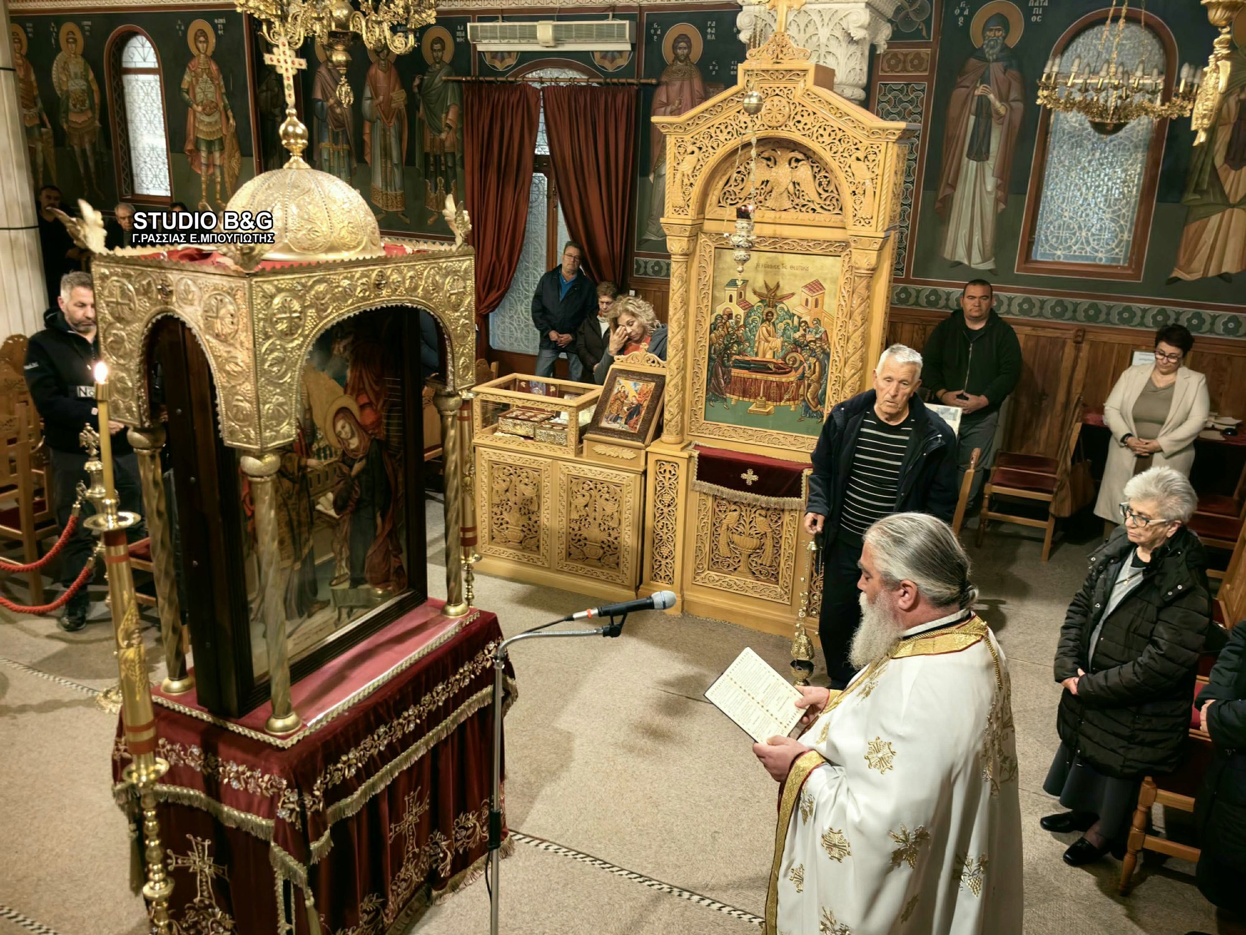 Ο εφημέριος του ναού πρωτοπρεσβύτερος π. Ελευθέριος Μίχος, ευχαρίστησε τους πιστούς από το Ναύπλιο αλλά και από άλλα μέρη που παρακολούθησαν με κατάνυξη τους χαιρετισμούς στην Θεοτόκο.