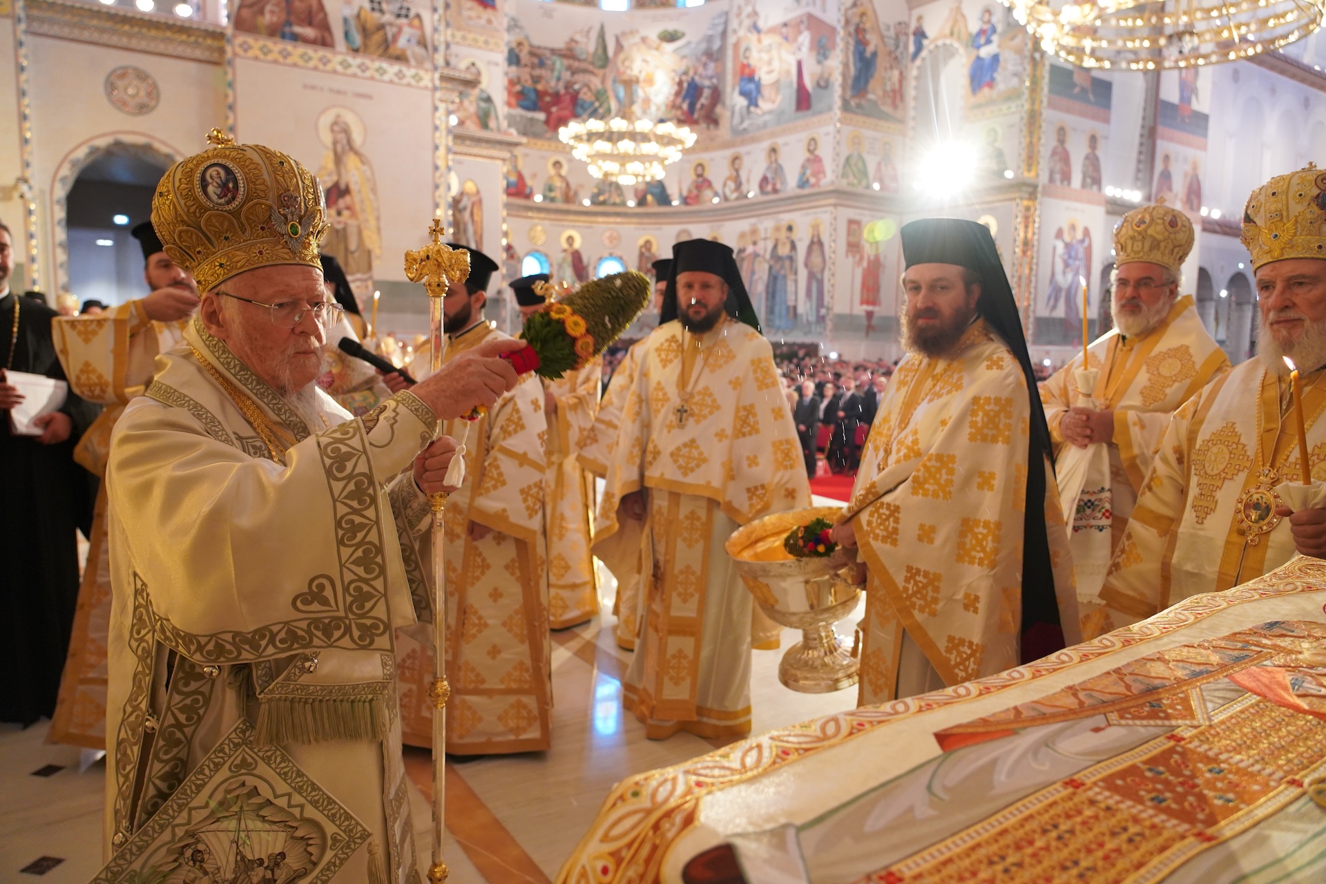 Ο Οικουμενικός Πατριάρχης κ.κ. Βαρθολομαίος σήμερα, Κυριακή, 26 Οκτωβρίου 2025, τέλεσε, μαζί με τον Πατριάρχη Ρουμανίας κ. Δανιήλ, τον Καθαγιασμό των Ιερών ψηφιδωτών Εικόνων του νεοανεγερθέντος Εθνικού Καθεδρικού Ναού στο Βουκουρέστι, στο πλαίσιο των επετειακών εκδηλώσεων συμπλήρωσης 140 ετών από την απονομή της Αυτοκεφαλίας στην Εκκλησία της Ρουμανίας και 100 ετών από την ανύψωσή της σε Πατριαρχείο από τον Οικουμενικό Θρόνο. Υπενθυμίζεται ότι, το 2018, ο Παναγιώτατος και ο Πατριάρχης Ρουμανίας είχαν τελέσει τα εγκαίνια του περικαλλούς Εθνικού Καθεδρικού Ναού.
