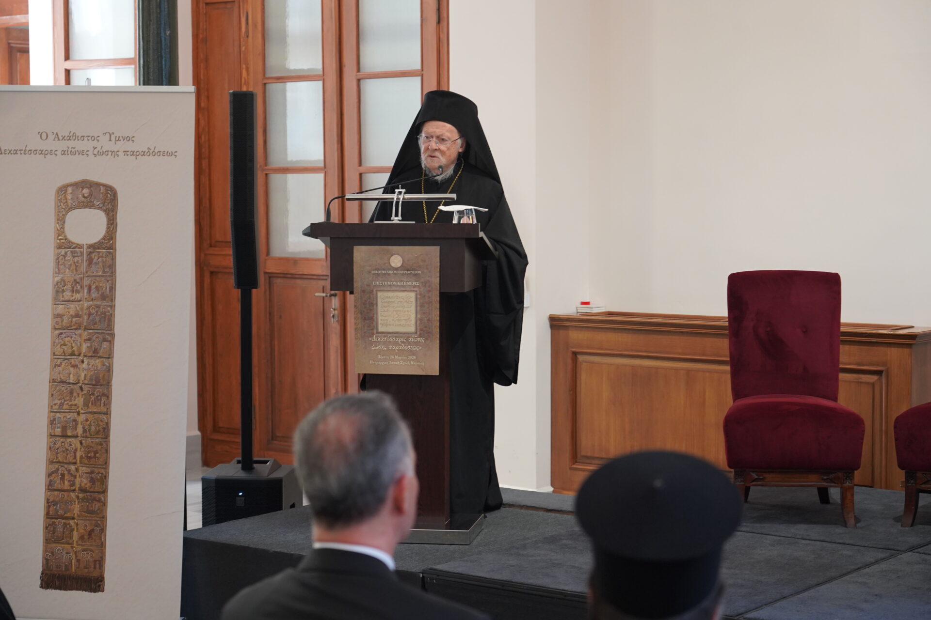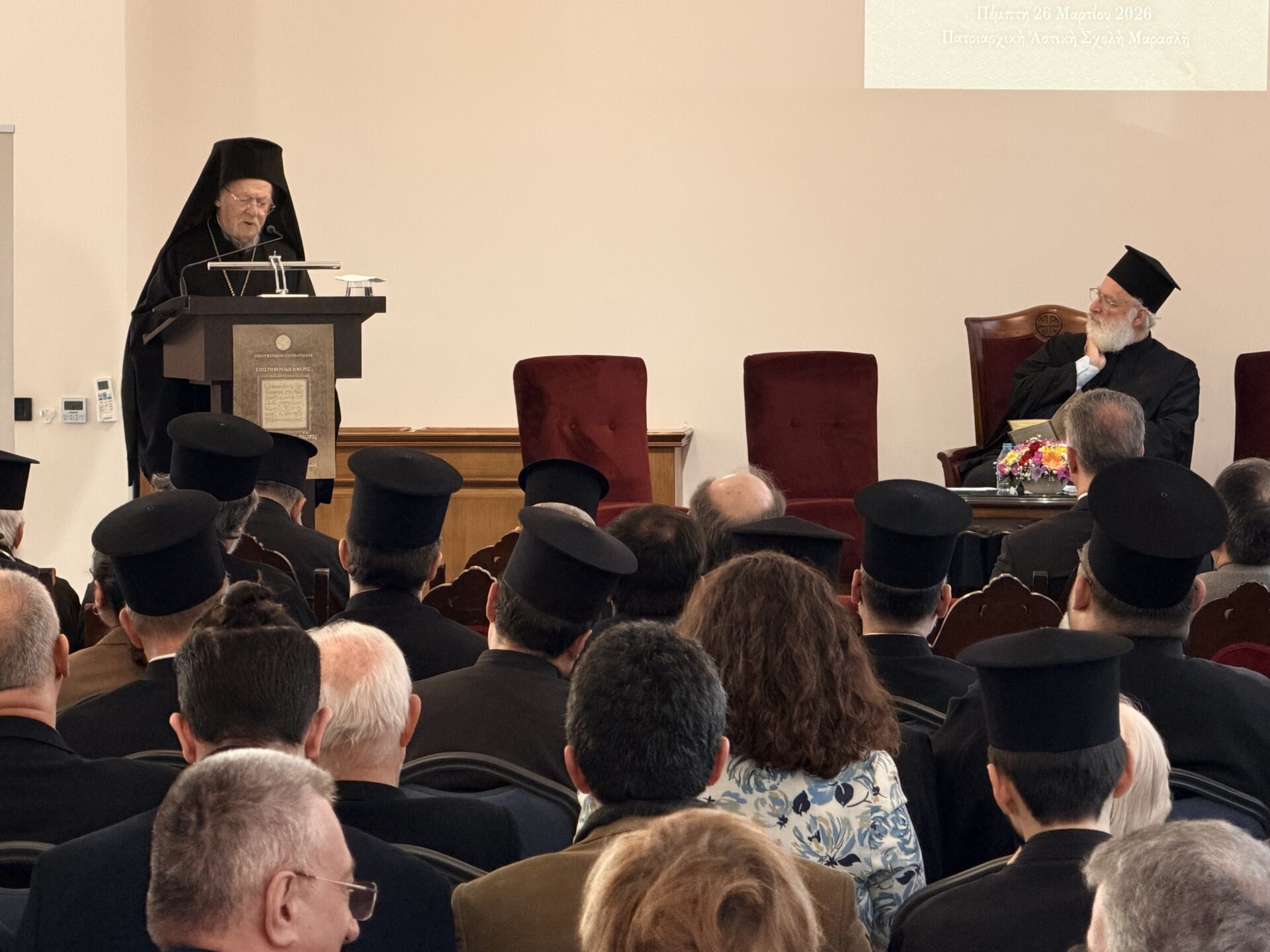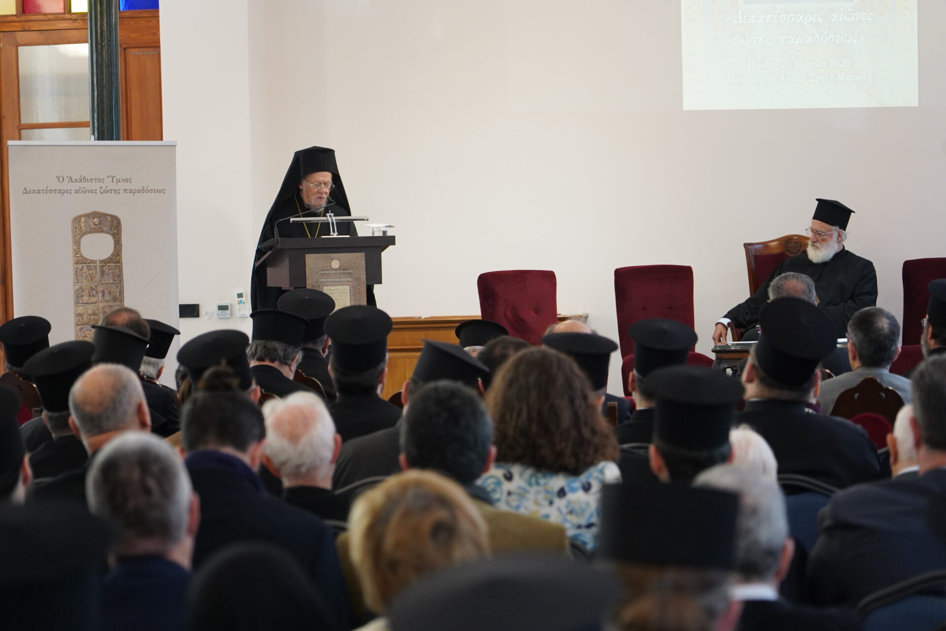 Ο Ακάθιστος Ύμνος είναι μεγαλιώδης ωδή εις την ελευθερίαν. Την ελευθερίαν του Θεού, η οποία εκφράζεται ως αγάπη προς τον άνθρωπον, και την ελευθερίαν της Παναγίας, η οποία απαντά με το «Γενηθήτω» εις τον ευαγγελιζόμενον την Σάρκωσιν του Λόγου του Θεού Άγγελον. Εις το πρόσωπoν της Θεοτόκου «συγκεφαλαιούται η ανθρωπότης»”, τόνισε η Α.Θ. Παναγιότης ο Οικουμενικός Πατριάρχης κ.κ. Βαρθολομαίος, σήμερα, Πέμπτη, 26 Μαρτίου 2026, στην ομιλία του, κατά την έναρξη της Ημερίδας, που διοργάνωσε το Οικουμενικό Πατριαρχείο με θέμα: «Ο Ακάθιστος Ύμνος: Δεκατέσσαρες αιώνες ζώσης παραδόσεως», στην Πατριαρχική Αστική Σχολή Μαρασλή.