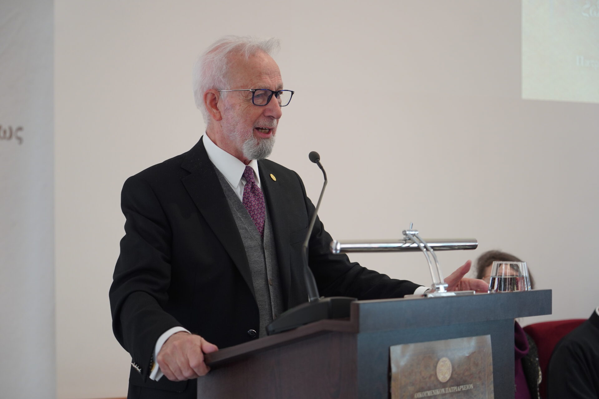 Ο Παναγιώτατος, καλωσόρισε με εγκαρδιότητα τους συνέδρους “εις την Πόλιν του Κωνσταντίνου, την Θεοτοκούπολιν, που εγέννησε, που έψαλε το πρώτον και που εβίωσε τον Ακάθιστον Ύμνον”, καθώς, επίσης, και “εις την ιστορικήν Καθέδραν της Αγίας του Χριστού Μεγάλης Εκκλησίας, της «αρχούσης και πασχούσης» Εκκλησίας, η οποία, όπως έλεγεν ο μακαριστός πνευματικός ημών πατήρ Μητροπολίτης Χαλκηδόνος Μελίτων, είναι «και αυτή ένας πραγματικός Ακάθιστος Ύμνος, ένας ύμνος ορθός, που κρατά την εύσέβειαν της πίστεώς μας και την άξιοπρέπειαν και την τιμήν του Γένους μας»”.