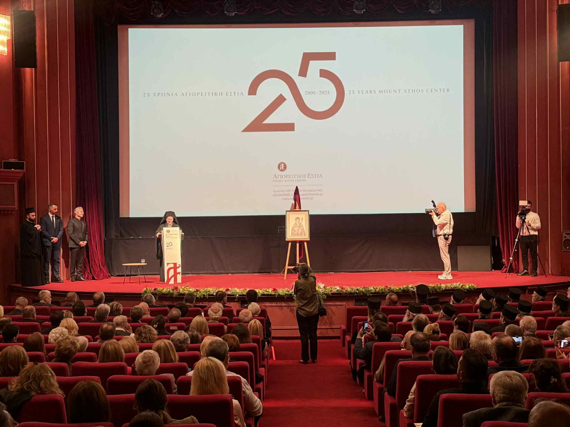 Η πανηγυρική εκδήλωση για τα 25 χρόνια της Αγιορειτικής Εστίας Θεσσαλονίκης τελέστηκε με επισημότητα, παρουσία του Οικουμενικού Πατριάρχη κ.κ. Βαρθολομαίου, επισήμων, ιεραρχών και εκπροσώπων των τοπικών αρχών και υπηρεσιακών παραγόντων.
