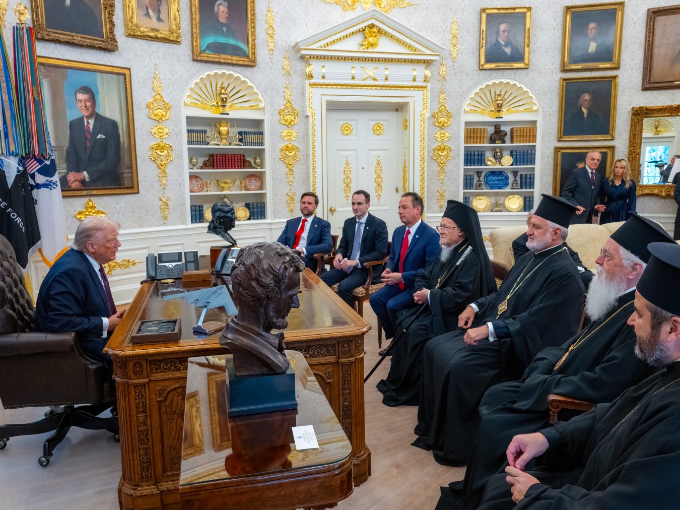 Η αντιπροσωπεία στον Λευκό Οίκο αναφέρθηκε επίσης στην επίσκεψη του Πάπα Λέοντα ΙΔ΄ στο Οικουμενικό Πατριαρχείο στην Κωνσταντινούπολη τον Νοέμβριο. Σύμφωνα με το δελτίο τύπου του Οικουμενικού Πατριαρχείου, ο Αντιπρόεδρος JD Vance, Ρωμαιοκαθολικός στο θρήσκευμα, «έδειξε μεγάλο ενδιαφέρον για αυτή τη συνάντηση».