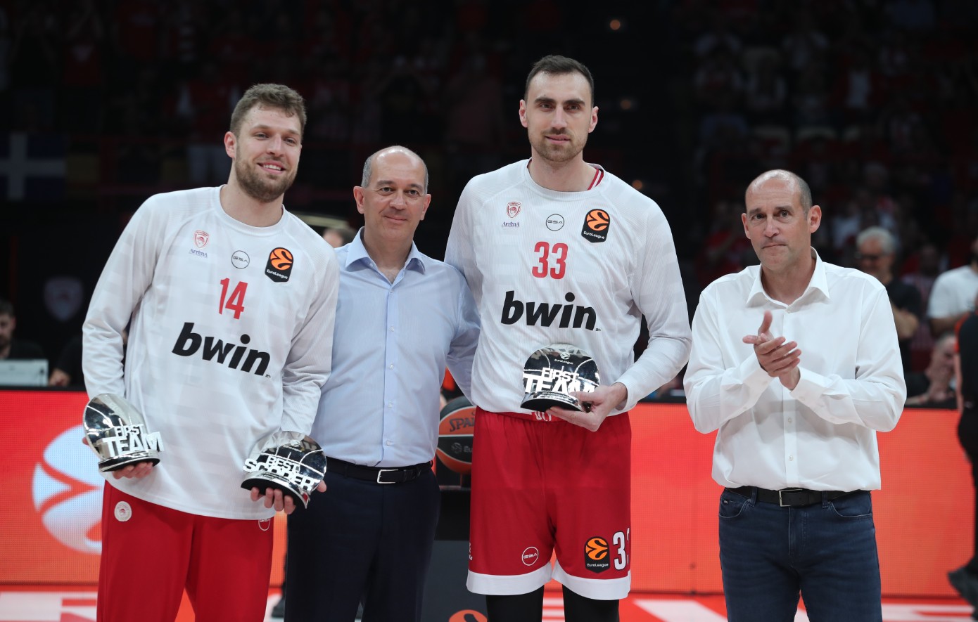 Ο Ολυμπιακός υποδέχεται τη Μονακό στο πρώτο παιχνίδι της σειράς των play off της Euroleague και οι αδερφοί Αγγελόπουλοι βράβευσαν τον Σάσα Βεζένκοβ και τον Νίκολα Μιλουτίνοφ πριν την έναρξη.