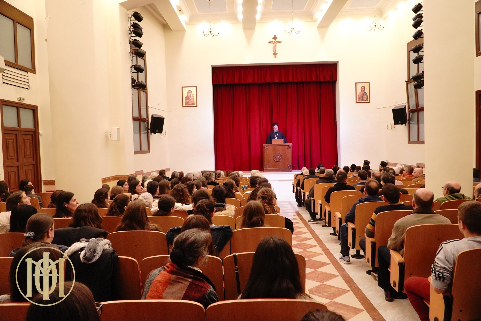 Κατά την έναρξη της εκδήλωσης ο πνευματικός της Αδελφότητας και κληρικός της Μητροπόλεως, π. Μιχαήλ Κόνιας, καλωσόρισε τον Ποιμενάρχη.