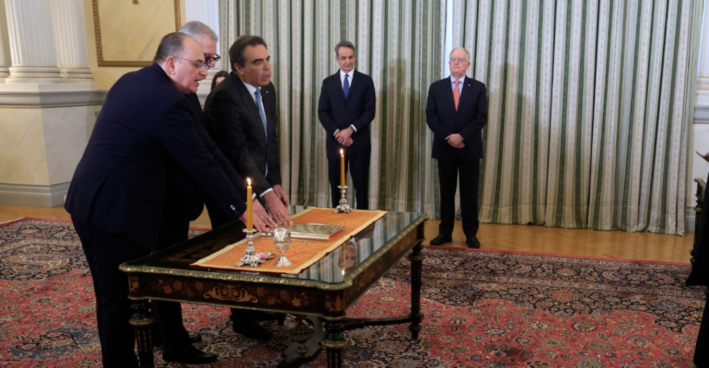 Ενώπιον του Προέδρου της Δημοκρατίας Κωνσταντίνου Τασούλα και παρουσία του Πρωθυπουργού Κυριάκου Μητσοτάκη, ορκίσθηκαν νωρίτερα σήμερα στο Προεδρικό Μέγαρο από τον Αρχιγραμματέα της Ιεράς Συνόδου, Επίσκοπο Σκιάθου Ιωάννη, ο Μαργαρίτης Σχοινάς, ως Υπουργός Αγροτικής Ανάπτυξης και Τροφίμων, ο Ευάγγελος Τουρνάς, ως Υπουργός Κλιματικής Κρίσης και Πολιτικής Προστασίας και ο Μακάριος Λαζαρίδης, ως Υφυπουργός Αγροτικής Ανάπτυξης και Τροφίμων.