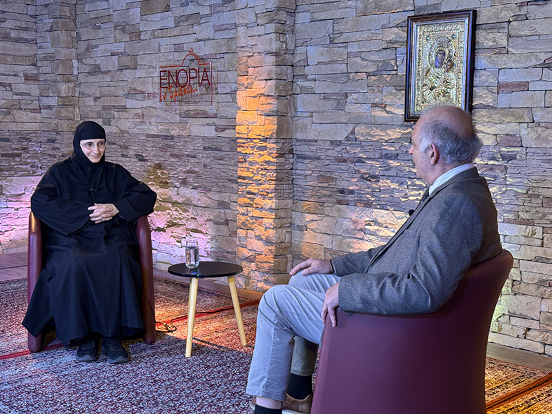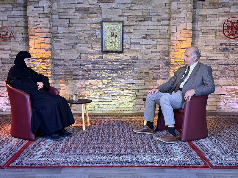 Στο «Ενοριακό Αρχονταρίκι» του Ιερού Ναού Ευαγγελιστρίας Πειραιώς και στο πλαίσιο των εκδηλώσεων «Ευαγγελίστρια 2026», την Τρίτη 31 Μαρτίου ο Ηλίας Λιαμής, Δρ. Θεολογίας, Μουσικολόγος και Συγγραφέας, φιλοξένησε τον Γερόντισσα Φιλοθέη, Ηγουμένη της Ιεράς Μονής Παναγίας Βρυούλων, σε μια συζήτηση με θέμα «Αγιασμένες μορφές: Οσία Γαβριηλία».