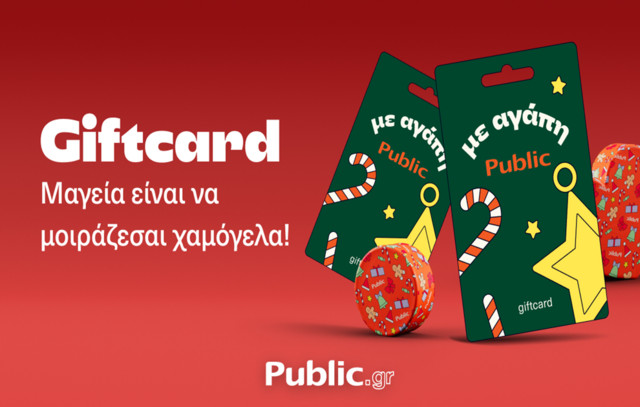 Το καλύτερο; Μπορείς να την αποκτήσεις μέσα σε τρία απλά βήματα online, ώστε να φτάσει άμεσα στον παραλήπτη της, ιδανική για τις “τελευταίας στιγμής” γιορτινές αποστολές. Κι αν προτιμάς κάτι απτό, η φυσική gift card είναι διαθέσιμη σε όλα τα καταστήματα Public και “Public+ home”, έτοιμη να μπει σε κάθε χριστουγεννιάτικο φάκελο ή δώρο. Η gift card δεν είναι απλώς μια λύση· είναι ένας όμορφος τρόπος να πεις “διάλεξε αυτό που θα σε κάνει πραγματικά χαρούμενο”.