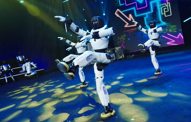 Ιδιαίτερη εντύπωση προκάλεσε ο συγχρονισμός: μεγάλες ομάδες ρομπότ κινούνταν σε αυστηρά συντονισμένους σχηματισμούς, μεταβαίνοντας ομαλά από τη μία σκηνή στην άλλη χωρίς διακοπές. Η σταθερότητα και η συνέπεια των κινήσεών τους υπογράμμισαν τον προηγμένο έλεγχο κίνησης και την ικανότητά τους να διατηρούν υψηλής έντασης παραστάσεις για μεγάλο χρονικό διάστημα.