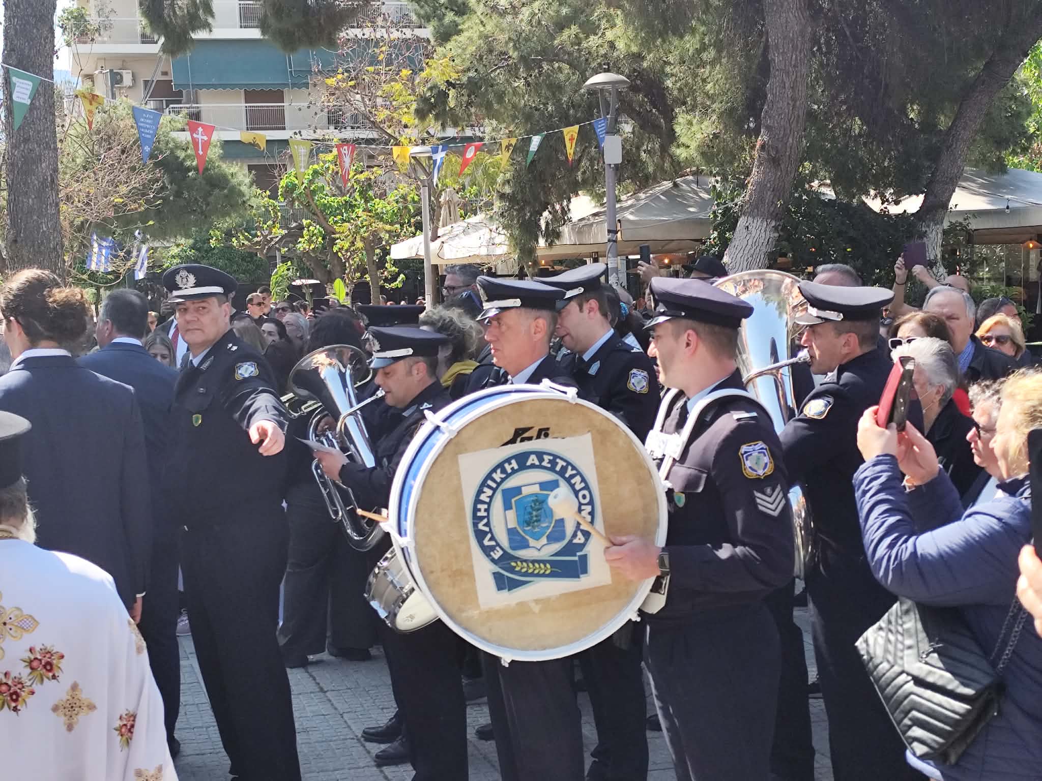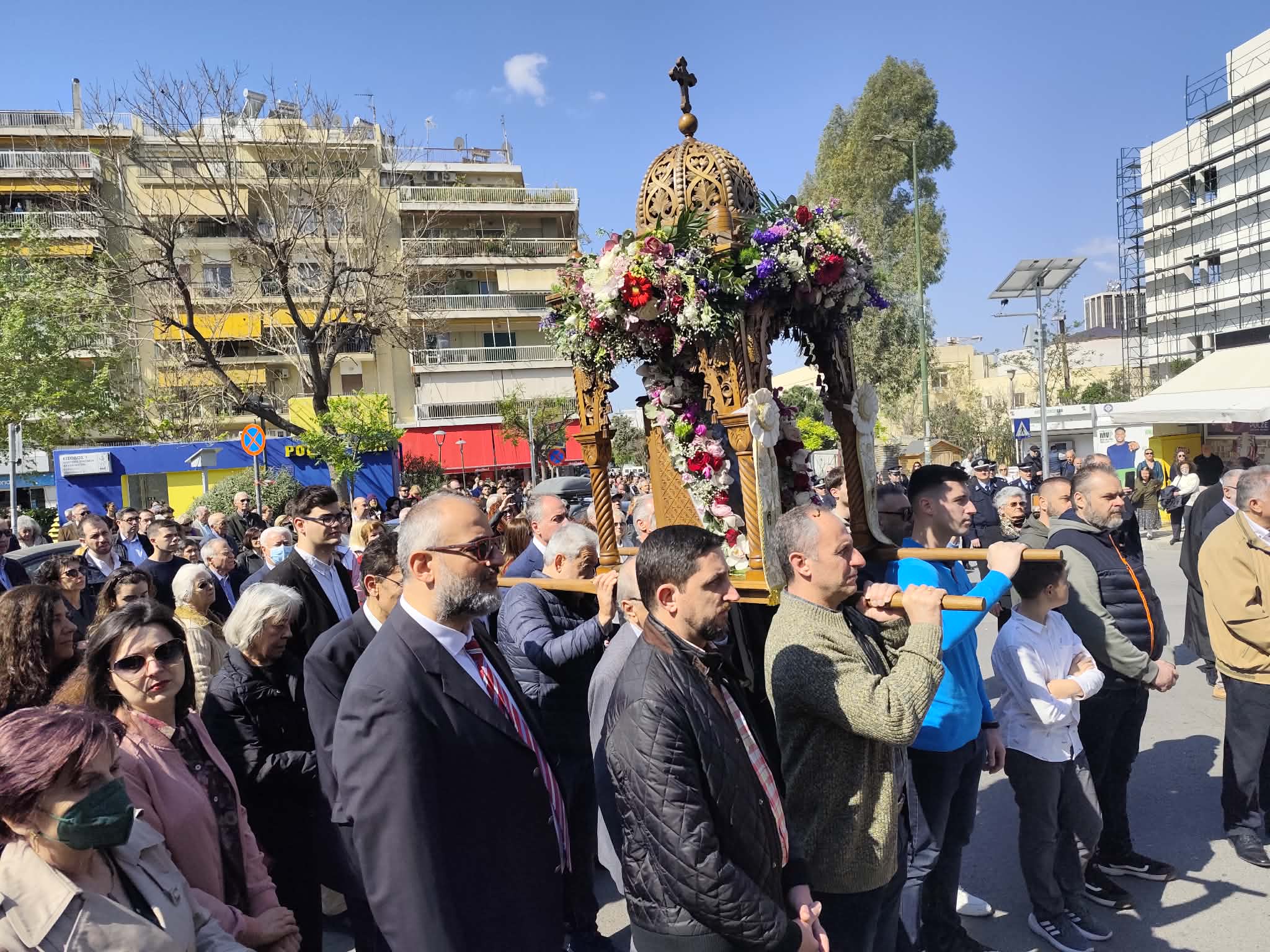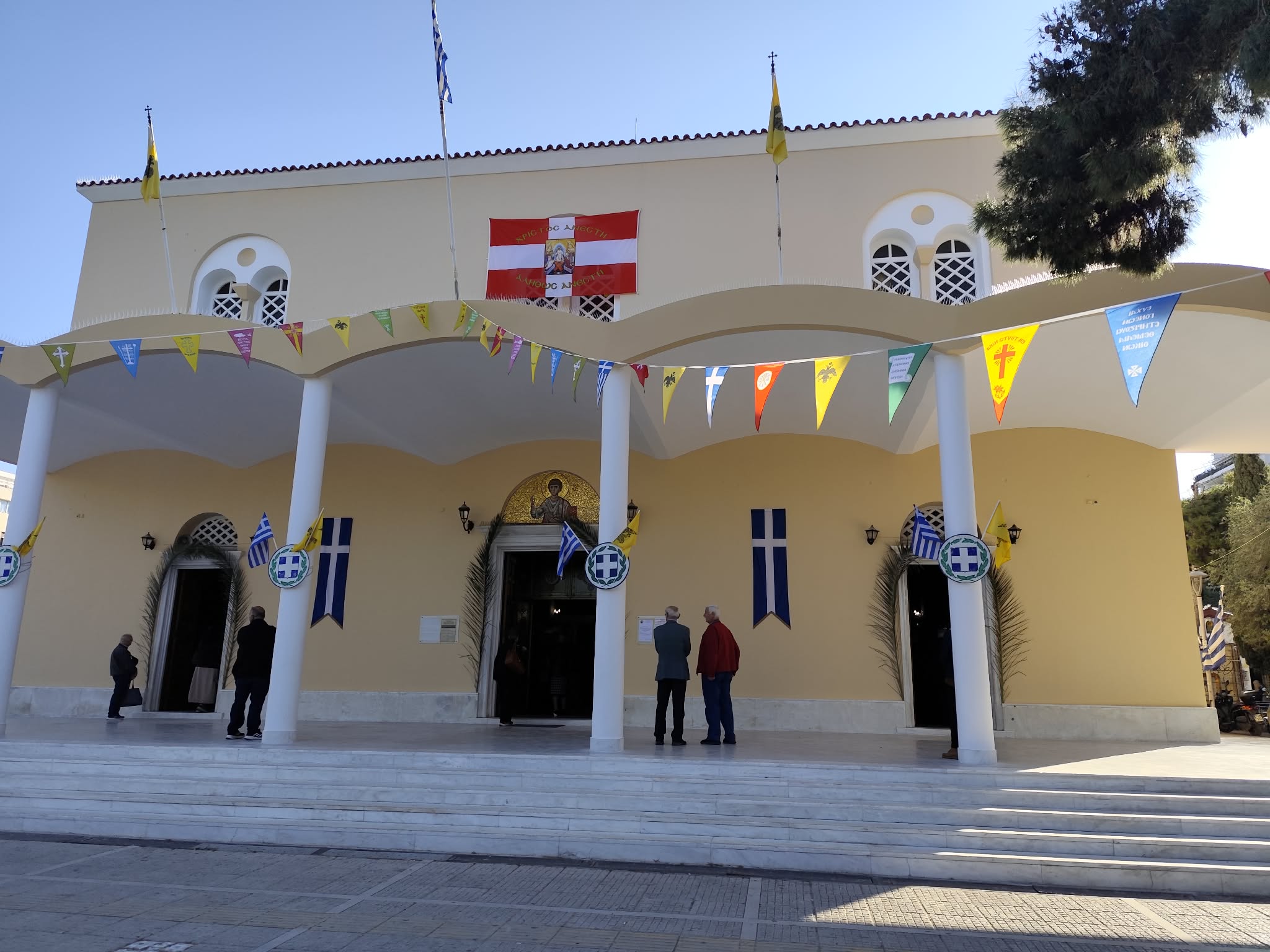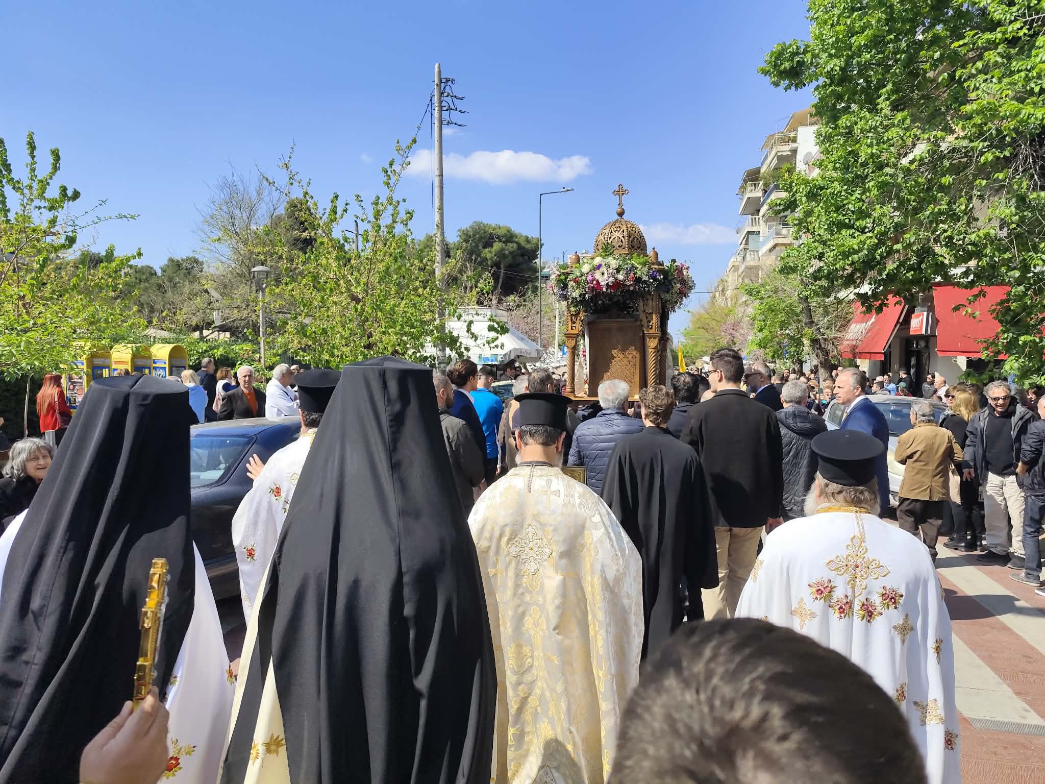 Με την επάνοδο της εικόνας στην εκκλησία, ο σεπτός Επίσκοπος Σκιάθου κ.κ. Ιωάννης αφού μετέφερε το κατάφορτο από χριστιανική αγάπη μήνυμα του Αρχιεπισκόπου Αθηνών και πάσης Ελλάδος κ.κ. Ιερωνύμου – που καλούσε ως στοργικός ποιμήν το χριστεπώνυμο πλήθος, να ξεπεράσει τις δυσπιστίες και τις πλάνες της παθογενούς εποχής μας και να αγκαλιάσει την εκκλησία του Χριστού μας, που είναι η μοναδική αληθινή πηγή θαλπωρής και αγάπης – διεκήρυξε μαζί με τις ηθικά ευγενείς και χριστιανικές ευχές του, την αδήριτη ανάγκη περισσότερο από άλλοτε σήμερα, να εδραιώσουμε και να διαφυλάξουμε την πίστη μας, που αποτελεί στην μακρά ελληνική διαχρονία, την τιμαλφή ηθική και πολιτισμική μήτρα του μαρτυρικού ελληνικού λαού. Στην αντιφώνησή του ο σεπτός πατέρας Αλέξιος, που με την ξεχωριστή φροντίδα και αγάπη του επιμελήθηκε την μεγαλοπρεπή εορτή, ευχαρίστησε το φιλόπτωχο ταμείο, τις κυρίες της ερανικής επιτροπής, τις εθελόντριες και τους εθελοντές που δούλεψαν αγόγγυστα για την άρτια υλοποίηση της ιεράς πανηγύρεως, την Φιλαρμονική της Ελληνικής Αστυνομίας, για την ευγενική συμμετοχή της, την Ελληνική Αστυνομία, για τα άψογα μέτρα τάξης και όλους τους ευλαβείς χριστιανούς, που με την αγάπη τους πύργωσαν, τη έξοχη αυτή χριστιανική εορτή.