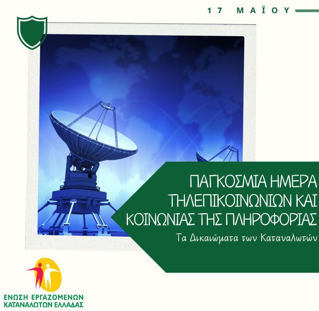 Στις 17/05 είναι η Παγκόσμια Ημέρα Τηλεπικοινωνιών και Κοινωνίας της Πληροφορίας. Η ΕΕΚΕ (Ένωση Εργαζομένων Καταναλωτών Ελλάδος) σε δελτίο τύπου της παρουσίασε τα δικαιώματα των καταναλωτών: