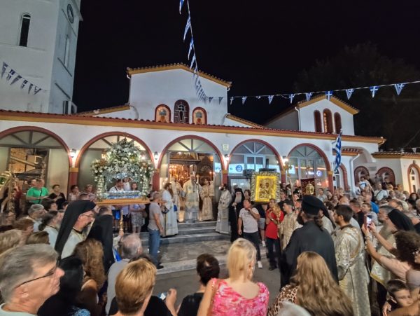 Ακολούθησε η ομιλία του Σεβασμιωτάτου κ. Γεωργίου, στην οποία αναφέρθηκε στο πρόσωπο της Υπεραγίας Θεοτόκου και στη σημασία του εορτασμού της Κοιμήσεώς της.