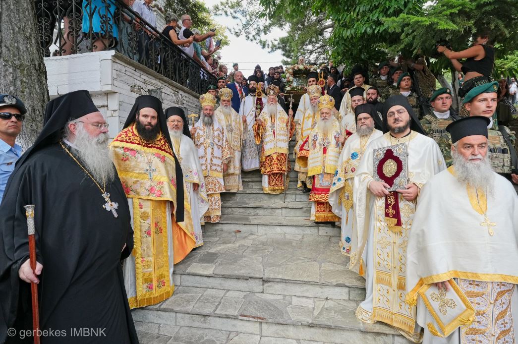Στο Πολυαρχιερατικό Συλλείτουργο προεξήρχε ο Σεβασμιώτατος Μητροπολίτης Λαοδικείας κ. Θεοδώρητος, ενώ έλαβαν μέρος οι Σεβασμιώτατοι Μητροπολίτες Νεαπόλεως και Σταυρουπόλεως κ. Βαρνάβας, ο οποίος χοροστάτησε στην ακολουθία του Όρθρου, Φιλίππων, Νεαπόλεως και Θάσου κ. Στέφανος, Ρεθύμνης και Αυλοποτάμου κ. Πρόδρομος και ο Ποιμενάρχης, Σεβασμιώτατος Μητροπολίτης Βεροίας, Ναούσης και Καμπανίας κ. Παντελεήμων, ο οποίος κήρυξε και τον θείο λόγο.