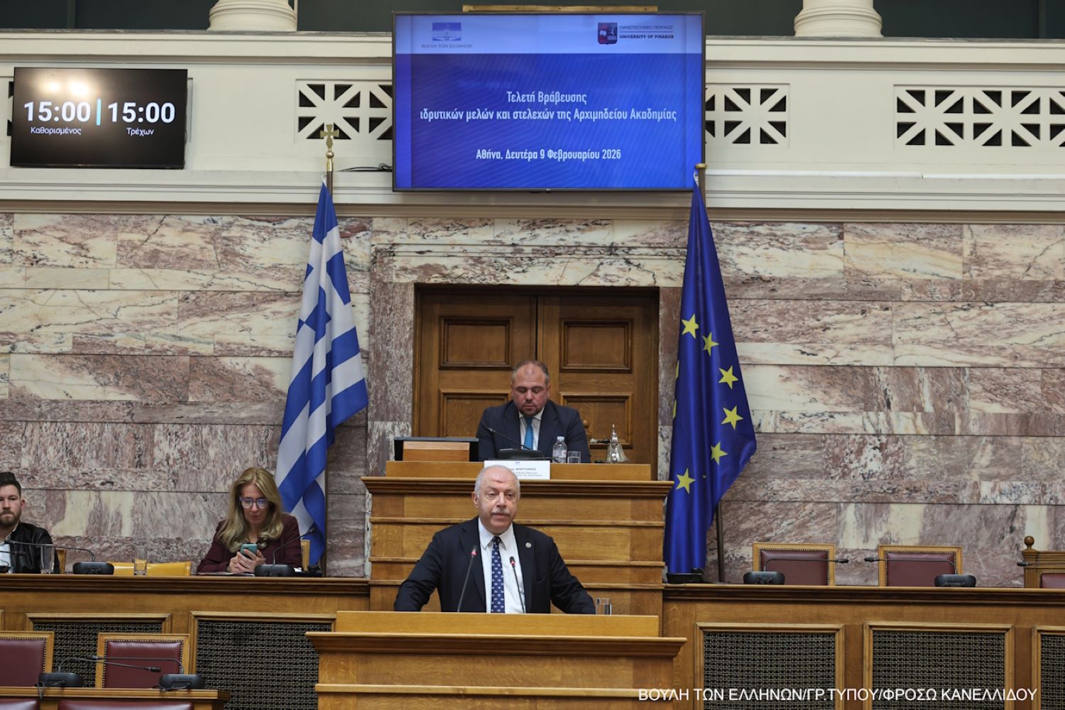 Με κοινή πρωτοβουλία του Προέδρου της Βουλής των Ελλήνων και του Πρύτανη του Πανεπιστημίου Πειραιώς, Καθηγητή Μιχαήλ Ε. Σφακιανάκη, πραγματοποιήθηκε στην Αίθουσα της Γερουσίας της Βουλής των Ελλήνων, σε κλίμα συγκίνησης και εθνικής υπερηφάνειας, η τιμητική εκδήλωση βράβευσης των ιδρυτικών μελών και στελεχών της Αρχιμηδείου Ακαδημίας (Archimedean Academy) του Μαϊάμι, Φλόριντα.
