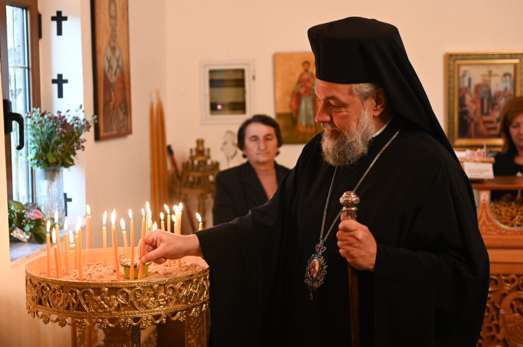 Στον πανηγυρίζοντα Ιερό Ναό, ο Σεβ. Μητροπολίτης Γόρτυνος και Μεγαλοπόλεως κ. Νικηφόρος, τέλεσε τον Όρθρο και την Πανηγυρική Θεία Λειτουργία, πλαισιούμενος από τον Γενικό Αρχιερατικό Πανοσιολ. Αρχιμ. Ιωσήφ Αγγελίδη, τον Πρωτοπρ. Γεώργιο Μπλάθρα εκ της Ι. Μ. Μονεμβασίας και Σπάρτης, τον Πρωτοπρ. Μιχαήλ Μεγαγιάννη, τον εφημέριο του Ναού Πρωτοπρ. Ηλία Κομινάκη και τον Διάκονο της Μητροπόλεως π. Δημήτριο Πολυχρονόπουλο, ενώ συμπροσευχόμενος παρέστη ο Πρωτοπρ. Γεώργιος Ψωμαδέλλης εκ της Ι. Μ. Λήμνου.