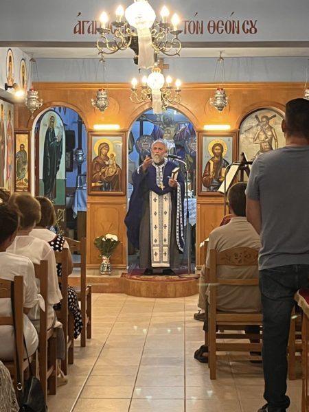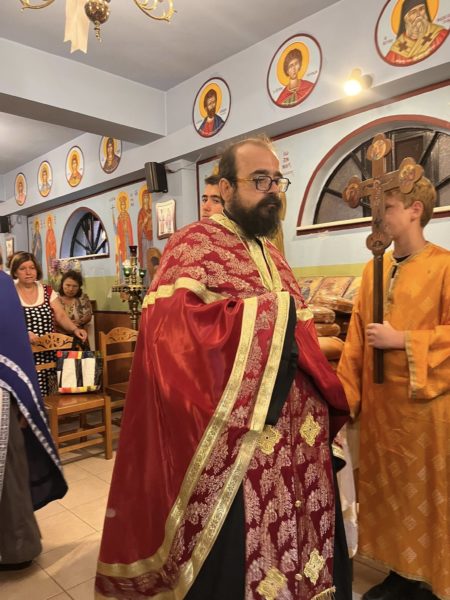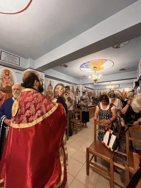 Της Ιεράς Ακολουθίας προεξήρχε ο Πανοσιολογιώτατος Αρχιμανδρίτης π. Πολύκαρπος, εκ της Ιεράς Μητροπόλεως Νεαπόλεως και Σταυρουπόλεως, πλαισιούμενος υπό ιερέων και ευσεβών χριστιανών.