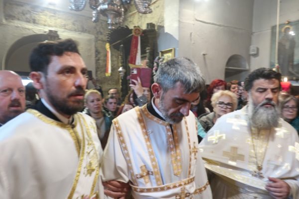 Προ δε του πέρατος της Θείας Λειτουργίας απένειμε το Μετάλλιο της Ιεράς Μητροπόλεως στον Συνταξιοδοτηθέντα Πρωτοπρ. Δημήτριο Μακρίνα.