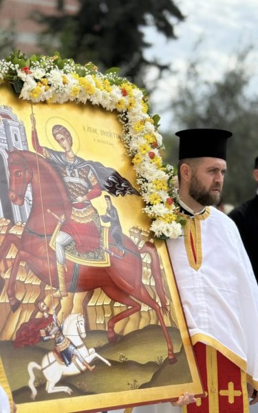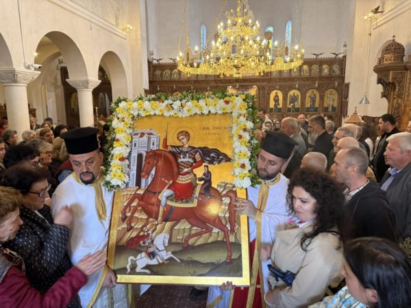 Στο τέλος της Θείας Λειτουργίας ακολούθησε η περιφορά της ιεράς εικόνας του Αγίου Δημητρίου πέριξ του ναού.