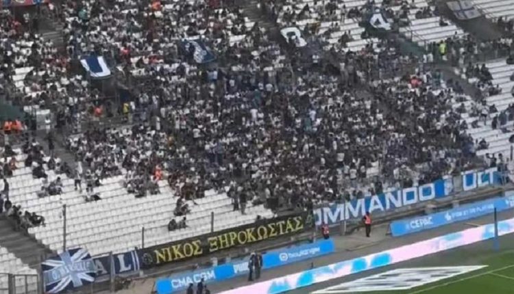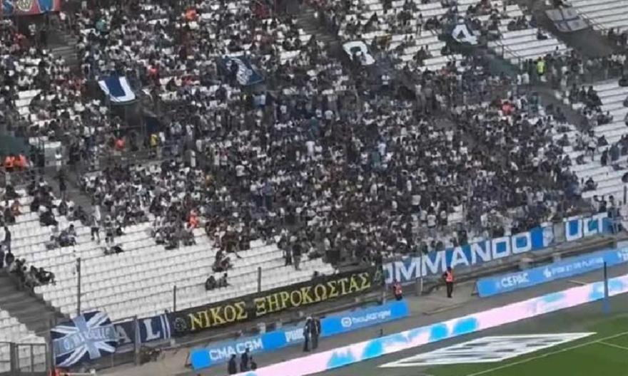 Οι οπαδοί της Μαρσέιγ τιμούν τη μνήμη του Νίκου Ξηροκώστα με πανό, που έχουν σηκώσει στο «Βελοντρόμ» και στην αναμέτρηση με τη Ρεμς.