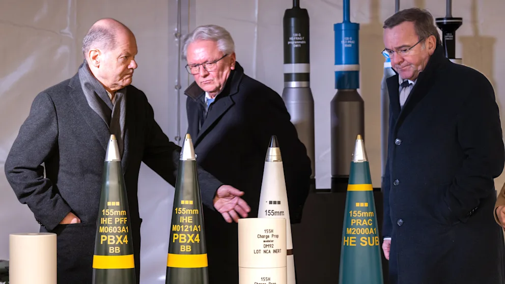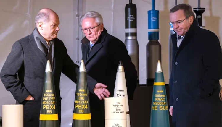 Μήνυμα στην αμυντική βιομηχανία στέλνει ο Σολτς, καθώς η Ευρώπη δυσκολεύεται να εφοδιάσει την Ουκρανία με πυρομαχικά.
