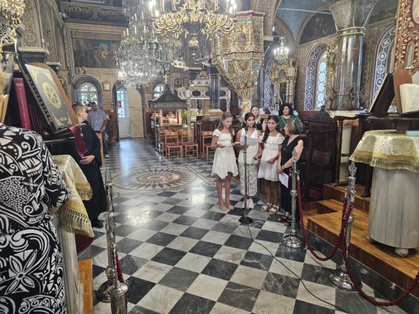 Ντυμένες στα λευκά, σαν γιασεμιά προσευχής, έψαλαν την Κυριακή 10 Αυγούστου 2025 την Παράκληση της Παναγίας στον Ιερό Ναό Παναγίας Ερειθιανής Βροντάδου Χίου μαθήτριες του Κατηχητικού Σχολείου της Ενορίας με την Κατηχητρία κ. Μαριάννα Πελαντή. Στην Ιερή Ακολουθία χοροστάτησε ο Σεβασμιώτατος Μητροπολίτης Χίου κ. Μάρκος, που επαίνεσε γονείς και παιδιά για την συμμετοχή στην ενοριακή ζωή και τους χάρισε εικόνες του Χριστού και της Παναγίας.