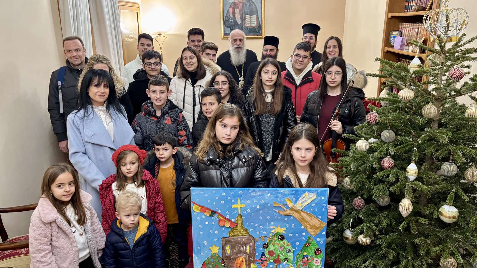 Πρωτοχρονιάτικα κάλαντα και παραδοσιακά τραγούδια έψαλλαν σήμερα, παραμονή Πρωτοχρονιάς, στον Σεβασμιώτατο Μητροπολίτη Μαντινείας και Κυνουρίας κ. Επιφάνιο η Μπάντα της ΔΙΚΕ Πελοποννήσου, η Φιλαρμονική του Δήμου Τρίπολης, ο Παιδικός Σταθμός και το ΚΔΑΠ της Ιεράς Μητροπόλεως, το Λύκειο Ελληνίδων Τρίπολης, το Κατηχητικό Σχολείο του Ι. Ναού Παναγίας Γιάτρισσας Τρίπολης και ομάδες παιδιών.