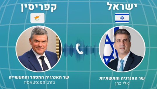 Ο Ισραηλινός υπουργός Ενέργειας είχε τηλεφωνική επικοινωνία με τον υπουργό Ενέργειας, Εμπορίου και Βιομηχανίας της Κύπρου με αντικείμενο την ηλεκτρική διασύνδεση με την Ελλάδα, μέσω της οποίας το ηλεκτρικό δίκτυο του Ισραήλ θα συνδεθεί με το ευρωπαϊκό.